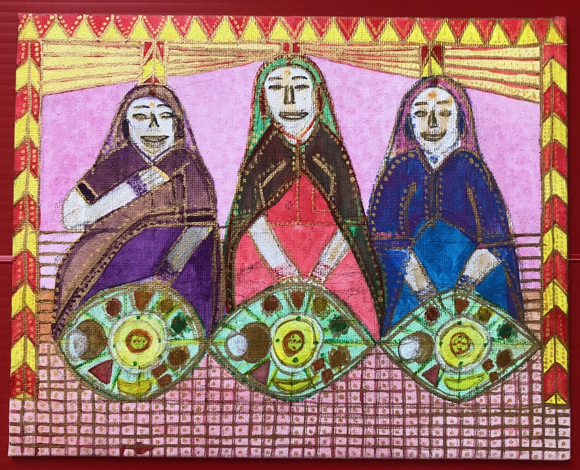 "The Ship of State": #9145 - Must be steered by ethics and morals. There is no place for racism, sexism or violation of LGBTQ rights. Poverty must be eradicated. We must live in harmony with our environment, including guarding our precious water supply and growing as much of our own food as possible. A single payer healthcare system insures the best medical care for every citizen and should replace our current tiered system, which insures inequality! Illustrating both respect and the beauty of diversity in our culture, the painting depicts a Hindu woman in front of her temple, an African Christian woman in front of her church and a Muslim woman in front of her mosque. This was made public on: Wednesday 21st September 2022: "International Day of Peace" (United Nations).