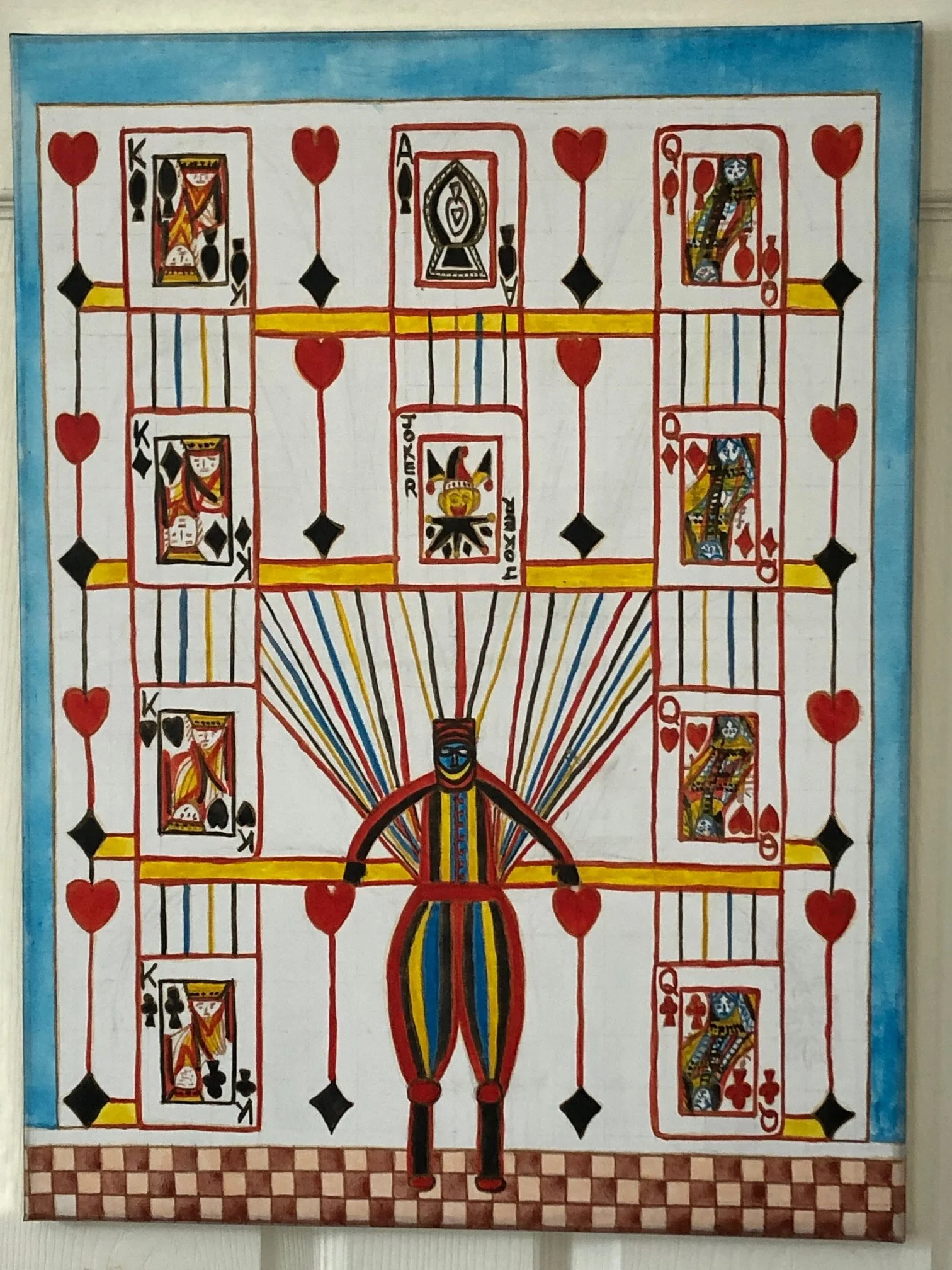 • ‘Kaleidoscope Portfolio’ 2022 – Mixed media (Cardboard box, rope & acrylic paint) 28x23” $500 USD