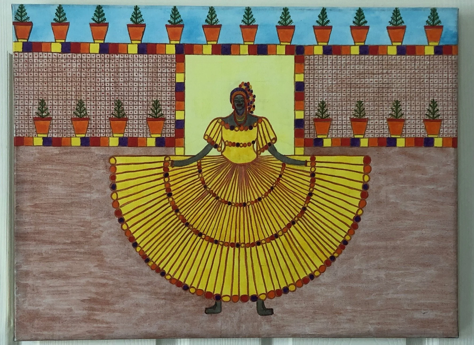 The paintings reflect her many impressions of growing up in Trinidad and Tobago during the 1950s.